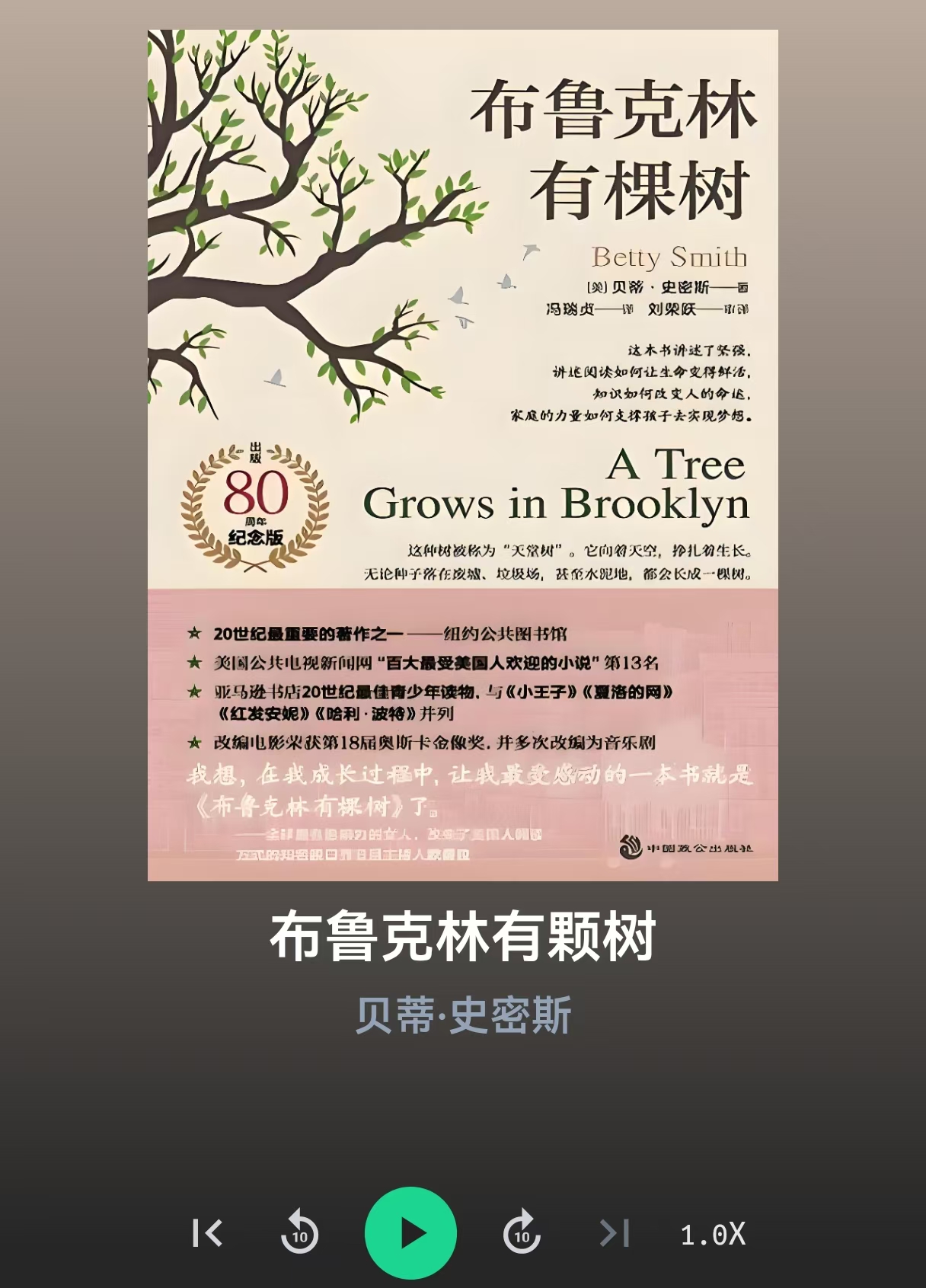弗兰西的妈妈靠擦洗地板和当看门人维持家用,她是全家的经济支柱。她希望自己的孩子能生活得好一点儿,她梦想着能供养两个孩子上大学。她的外祖母没有文化,连字都不识,却建议弗兰西的妈妈给自己的孩子读《圣经》,读莎士比亚,讲述民间故事和童话,好让孩子虽然处于困境当中,也不至于沉沦。弗兰西姐弟在物质上几乎一无所有,却意外地拥有了巨大的精神财富。
